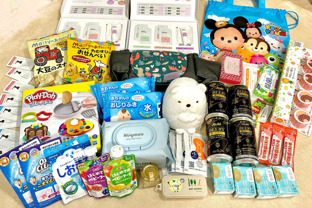 ミルク、おしりふき、消臭袋、ベビーグッズ、食品などたくさんいただきました。